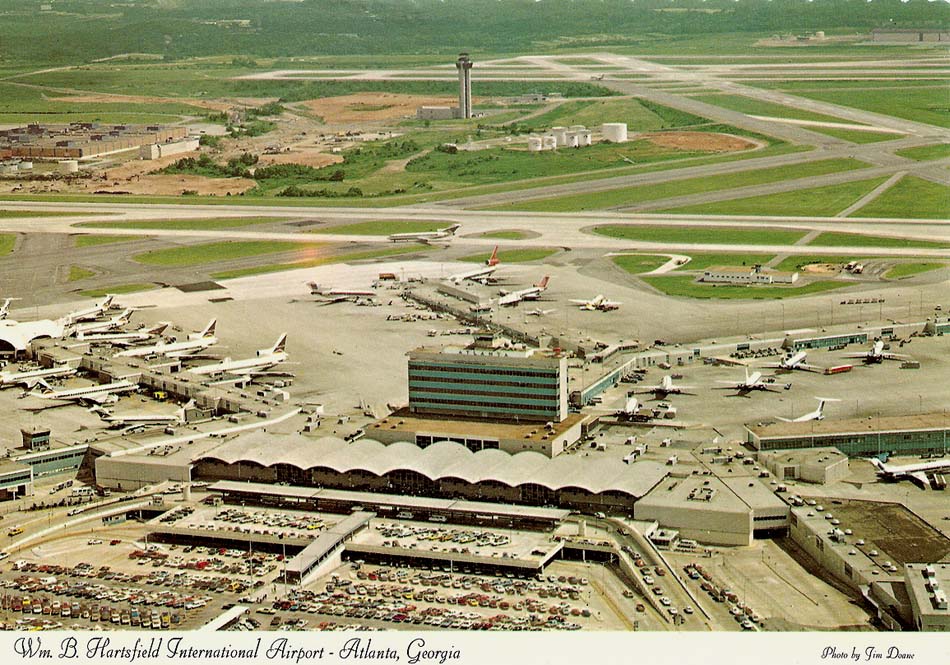The postcard above shows a mid-60's view of the airport and demonstrates the increasingly crowded conditions that resulted in aircraft crammed into any available spot. When larger jet airliners came on the scene, the situation grew worse. One of the great features of the 1961 terminal is visible on the right, the observation deck that allowed airport visitors to soak in an unparalleled view of the airport's activities.